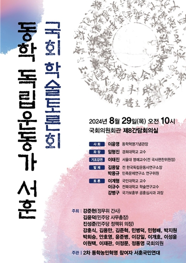 [남도저널 김용범 기자] 강준현 국회의원(더불어민주당, 세종을)이 29일 국회에서 김윤덕 민주당 사무총장, 진성준 당 정책위 의장 등과 함께 ‘동학 독립운동가 서훈 국회 학술토론회’를 개최한다.