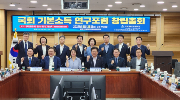 [남도저널 김용범 기자] 국회의원 24명으로 구성된 국회 연구단체인 ‘국회 기본소득 연구포럼(대표의원 : 소병훈)’이 28일 국회 의원회관 제1세미나실에서 창립총회를 개최, 본격적인 활동을 시작했다.
