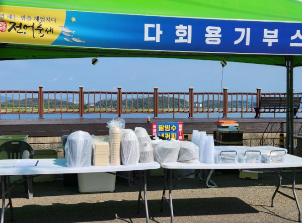 광양시는 음식 판매 부스, 체험 부스, 푸드트럭 등 총 14개의 입점 업체 등에 일회용품 사용 금지를 사전에 안내해 음식점들의 혼란을 방지했으며 축제 중에도 일회용품 줄이기에 총력을 기울였다.