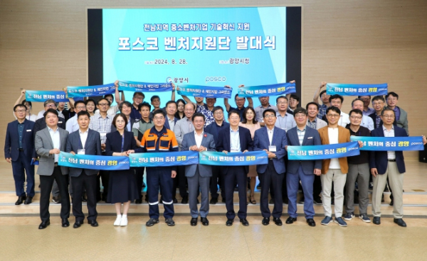 [남도저널 김영도 기자] 광양시는 28일 ㈜포스코와 함께 광양 및 전남지역 중소벤처기업 기술지원을 제공하기 위한 ‘2024 포스코벤처지원단’ 발대식을 개최했다고 밝혔다.