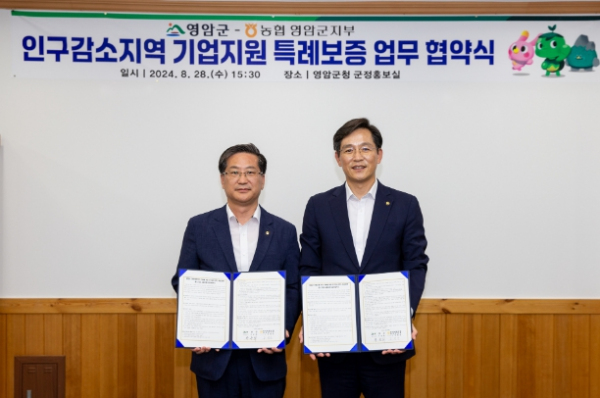 이날 협약에서 영암군과 농협은행은 특례보증 사업 대상, 영암군 이차보전 비율·절차를 합의하고, 기업 성장 촉진과 지속가능 발전을 위해 상호 협력하기로 약속했다.
