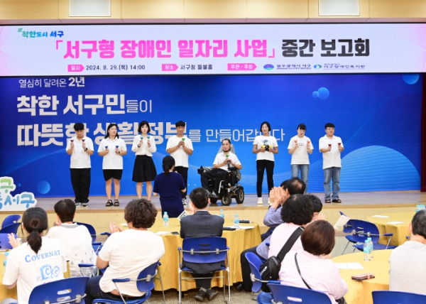 김이강 서구청장은 “서구형 장애인일자리 사업이 일자리 참여자의 소득보장과 보호자의 돌봄부담 경감을 넘어 시민 모두가 차별과 편견이 없이 지역사회 안에서 행복을 누리는 무장애 도시 조성을 이끄는 동력이 될 수 있도록 최선을 다하겠다”고 말했다.