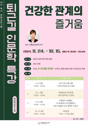 ‘건강한 관계의 즐거움’ 주제로, 9월 24일부터 매주 화요일 19시 총 4회 강의