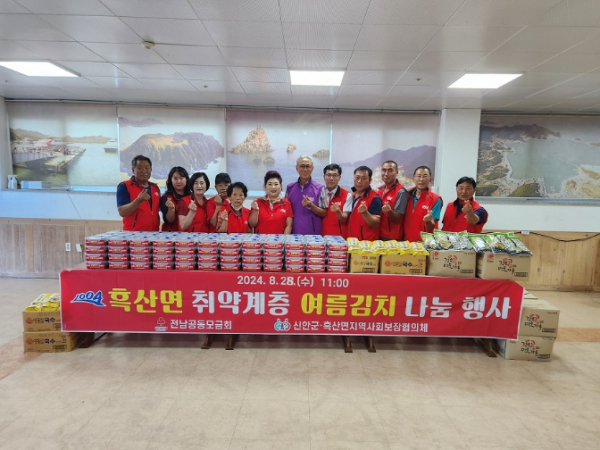 [남도저널 봉현구 기자] 신안군 흑산면지역사회보장협의체(이호근 민간위원장)는 지난 28일 건강한 여름나기 일환으로 저소득 취약계층 150가구에 여름 김치 나눔 행사를 추진했다고 밝혔다.