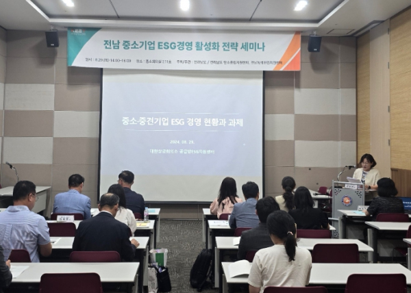 [남도저널 박기철 기자] 전라남도는 전남탄소중립지원센터와 전남녹색환경지원센터 공동으로 중소기업 탄소중립 이행 방안 마련을 위한 중소기업 ESG 경영 활성화 전략 세미나를 29일 광주 김대중컨벤션센터에서 개최했다.