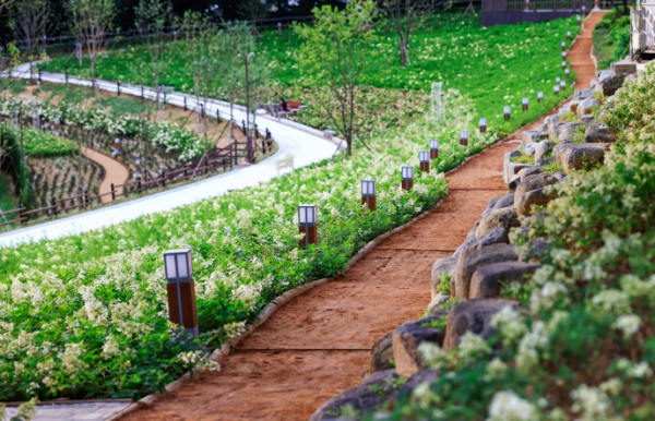 수국의 생장 환경, 꽃의 모양과 색깔, 개화 시기 등 특징을 고려해 조성한 3곳의 수국정원에는 트랠리스, 포토존, 야간조명 등을 설치하여 아침부터 밤까지 펼쳐지는 그림같은 수국정원에서 여름의 낭만을 만끽할 수 있게 했다.