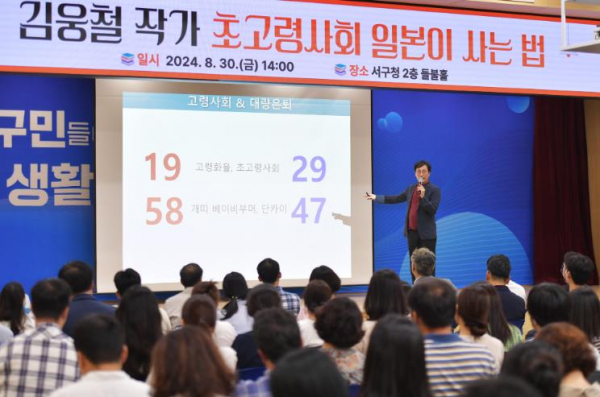 김이강 서구청장은 “특강을 통해 직원들이 초고령사회에 대한 이해를 높이고, 앞으로의 정책 수립과 실행에 있어 효과적인 대응 방안을 한걸음 빠르게 마련할 수 있을 것으로 기대한다”며 “앞으로도 주민, 직원들과 더 넓고 깊게 소통하며 ‘착한도시 서구’를 만들겠다”고 말했다.
