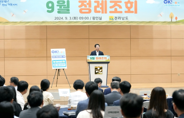 김영록 지사는 이날 오전 도청 왕인실에서 9월 정례조회를 통해 “현재는 무늬만 지방자치일 뿐 선출직 뽑는 거 외에는 변한 게 별로 없다.