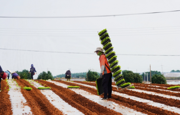 [남도저널 김승귀 기자] 해남군 황토 들녘마다 배추 정식이 한창이다.