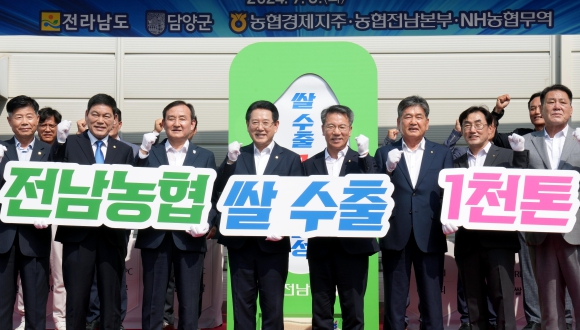 [남도저널 박기철 기자] 전라남도와 전남농협이 국내 쌀 소비는 줄고 재고는 쌓이면서 발생하는 쌀값 하락 문제를 해결하기 위해 수출 1천 톤 달성을 목표로 정하고, 3일 담양군농협에서 ‘전남쌀 수출 확대! 글로벌 도약 선포식’을 열었다.