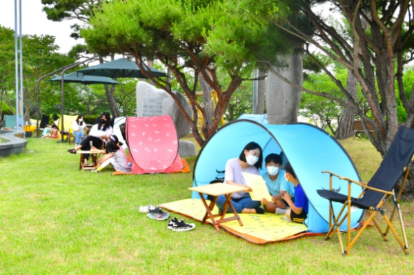 도서관 밖에는 ‘캠핑 감성’을 느낄 수 있도록 앞마당에 텐트와 돗자리, 테이블 등을 설치한다.