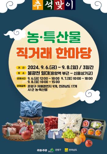 [남도저널 박기철 기자] 전라남도가 추석을 맞아 6일부터 3일간 서울 은평구 불광천에서 전남 농특산물을 홍보 판매하는 직거래 한마당 행사를 개최한다.