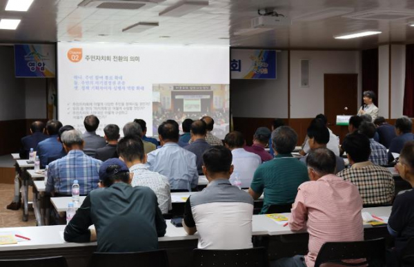 9/23일부터 10/4일 영암읍·시종면·도포면·군서면·서호면행정복지센터에서 진행되는 이번 교육은, ‘제1기 영암형 주민자치회’ 구성을 위한 것으로, 영암군민에게 주민자치회를 알리는 맞춤형 기본교육과정이다.