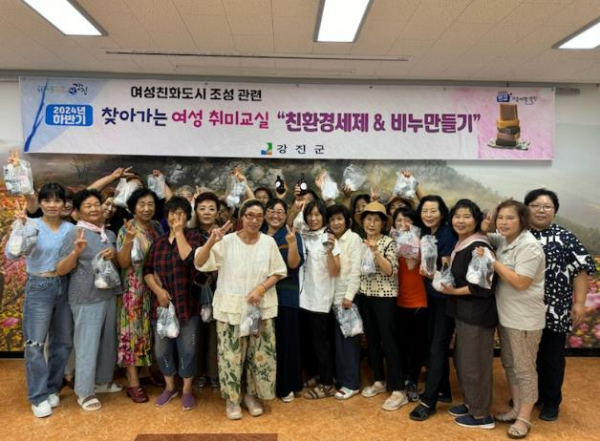 [남도저널 양용숙 기자] 강진군은 지난 4일, 군동면사무소를 마지막으로 여성친화도시 조성 사업의 일환인 하반기 찾아가는 ‘여성취미교실’을 성황리에 마무리했다고 밝혔다.