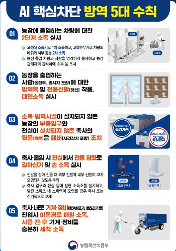 이영남 전남도 동물방역과장은 “가금농가에서는 겨울철이 오기 전에 방역시설을 보강하고, 기본 차단방역 수칙을 반드시 지키는 등 올 겨울을 미리 준비하길 바란다”고 당부했다.