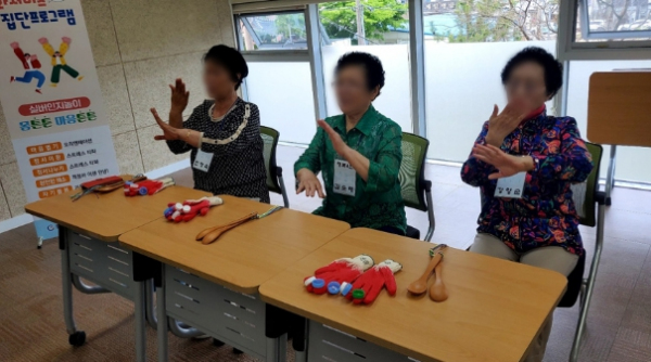 올해 신설된 ‘실버인지놀이’ 프로그램은 나무 숟가락과 막걸리 병을 이용해 신체를 움직이며 리듬을 느끼는 난타 활동으로, 신체적 건강을 유지하고 우울감을 해소할 수 있어 프로그램 참여자들에게 큰 호응을 얻었다.