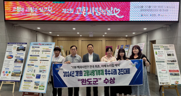 [남도저널 양용숙 기자] 완도군은 지난 6일, 경북 경주시 화백컨벤션센터에서 열린 ‘고향사랑기부제 우수 사례 경진대회’에서 장려상을 수상했다