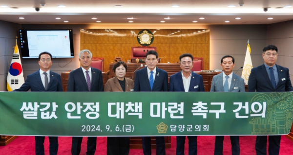 [남도저널 김종민 기자] 담양군의회가 지난 9월 6일 ‘쌀값 안정 대책 마련 촉구 건의안’을 만장일치로 채택하고 정부의 대책마련을 촉구했다.