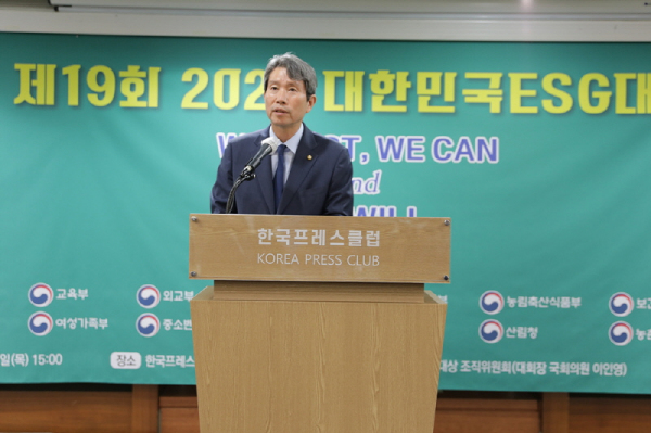 대회장인 이인영 국회의원은 영예롭게 수상하시는 수상자에 대한 축하 인사와 함께 ‘이번 시상식은 사회적 책임·환경적 책임·사회공헌에 앞장선 각 공로자를 발굴하여 사회공헌에 대한 인식을 높이고, 더 행복한 사회를 실현해가고자 마련했다.’며 더 많은 기업과 단체가 ESG의 가치를 실천할 수 있기를 바란다며 개회사를 통해 당부의 메시지를 전했다.