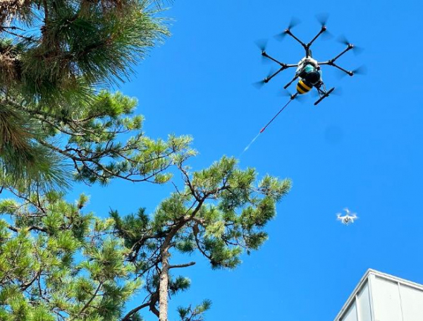 드론을 활용한 이유는 말벌 집 제거를 위해 소방서에서 출동했으나, 차량 진입이 어렵고, 사람이 오르기에는 흉고 직경이 얇아 끊어질 우려가 있는 20m 길이의 소나무 위에 자리하고 있어서, 완벽한 제거가 되지 않아 일반적인 방법으로는 어려워 드론을 이용해 방역을 실시했다.