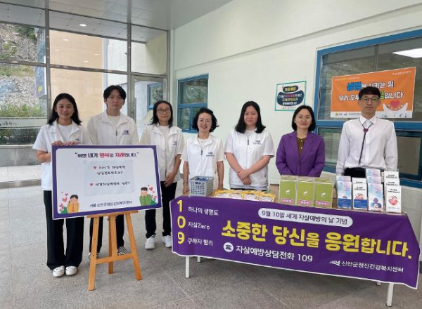 신안군정신건강복지센터는 자살고위험군 40대부터 50대 남성을 대상으로 ▲세계 자살예방의 날 관련 Q·A ▲자살예방․정신건강 상담전화 안내 등 생명의 소중함과 정신건강 관리의 중요성을 홍보했다.