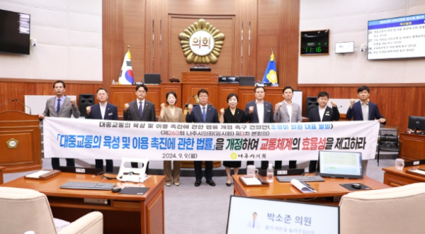 [남도저널 김용범 기자] 나주시의회는 9일 제263회 나주시의회(임시회) 제3차 본회의를 열고 ‘'대중교통의 육성 및 이용 촉진에 관한 법률'개정 촉구 건의안’을 제안했다.