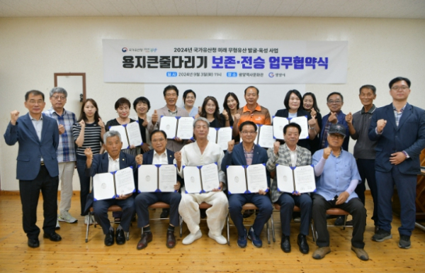 [남도저널 김영도 기자] 광양시는 지난 3일 광양역사문화관 회의실에서 2024년 국가유산청 『미래 무형유산 발굴·육성 사업』의 세 번째 프로그램인 ‘용지큰줄다리기 보존·전승 업무협약식’을 개최했다고 밝혔다.