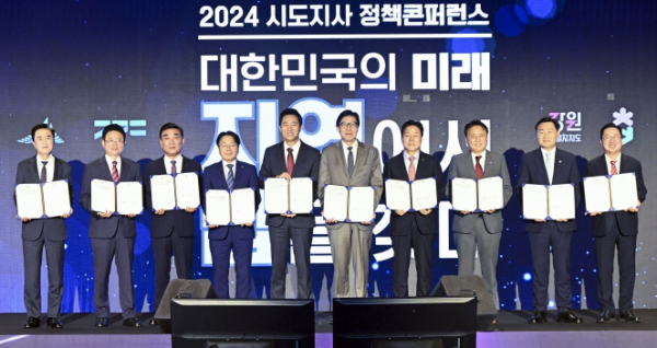 한편 대한민국시도지사협의회는 지역인구 감소에 대한 정책대안 제시를 위해 ‘대한민국의 미래, 지역에서 답을 찾다’를 주제로 ‘2024 시도지사 정책콘퍼런스’를 개최했다. 이날 행사는 개막식과 시‧도지사 주제 발표, 언론인터뷰 순으로 진행됐다.