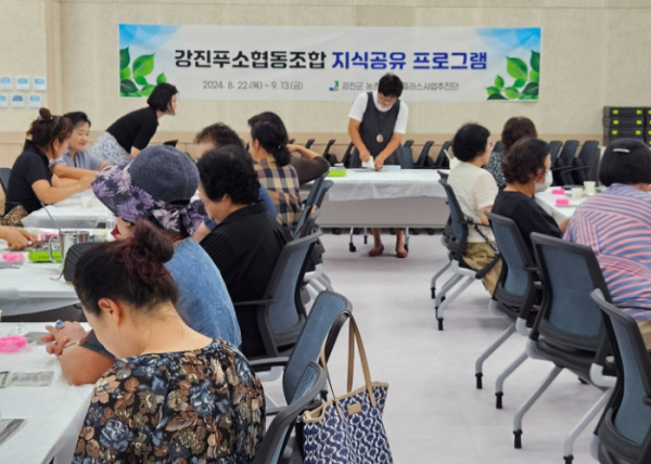[남도저널 양용숙 기자] 강진군 농촌신활력플러스사업추진단(농어촌개발과)은 지난달 22일부터 액션그룹인 강진푸소협동조합 조합원을 대상으로 지식공유 프로그램을 진행하고 있다.