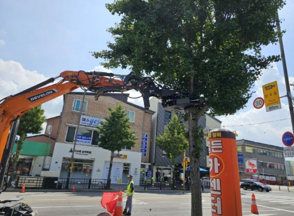 민원 많은 도심 쾌적한 가로 환경 조성 위해 진동수확기 이용해 빠르고 효율적으로 추진