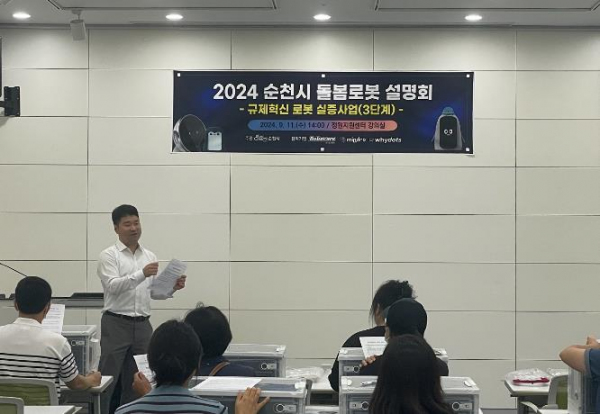 [남도저널 김영도 기자] 순천시는 지난 11일 순천정원지원센터에서 돌봄로봇을 지원 및 확대하는 규제혁신 로봇 실증사업 설명회를 개최했다고 밝혔다.