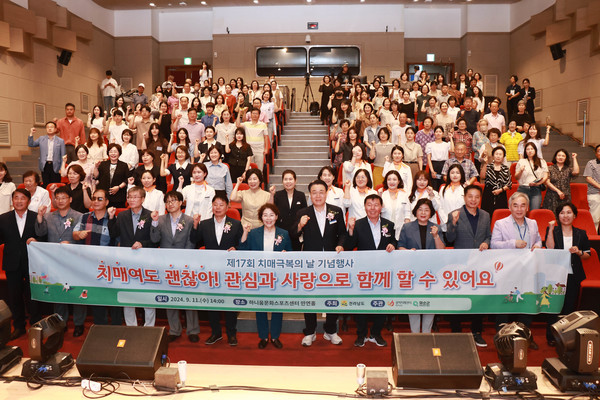 화순군(군수 구복규)은 ‘치매 극복의 날’을 맞아 지난 11일 하니움문화스포츠센터 만연홀에서 전라남도·광역치매센터·화순군이 공동 주관으로 ‘치매여도 괜찮아! 관심과 사랑으로 함께 할 수 있어요’를 주제로 ‘제17회 치매 극복의 날 기념행사’를 개최했다고 밝혔다.