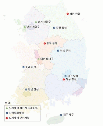 2014년부터 시작한 도시재생사업은 지금까지 21개 시군 53곳에 7천554억 원을 투입해 올해까지 11곳이 완료됐고, 42곳은 정주 환경개선, 청년 창업 공간조성 등 사업이 진행 중이다.
