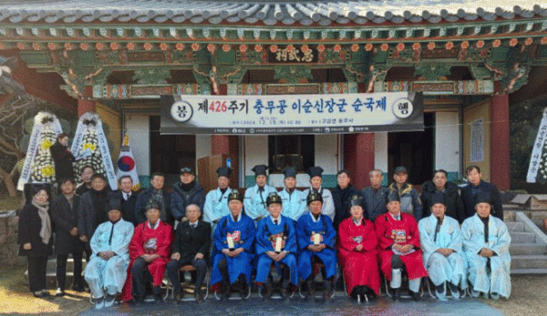 [남도저널] 김용범 기자 =완도군은 지난 12월 19일 묘당도 이충무공 유적 충무사(국가 문화유산, 사적 114호)에서 '이순신 장군 426주기 순국제'를 봉행했다.
