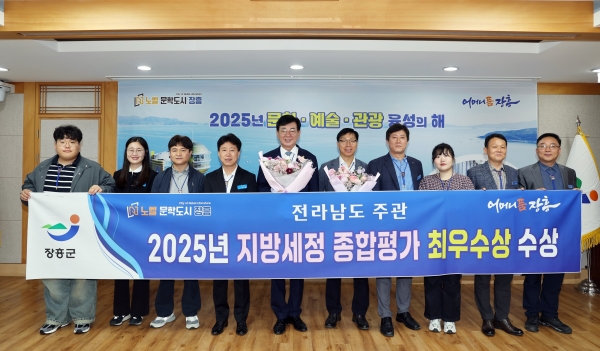 [남도저널] 양용숙 기자 = 장흥군은 전라남도가 실시한 2025년 지방세정 종합평가에서 도내 22개 시군 중 군 단위 1위를 차지해‘최우수상’을 수상했다.