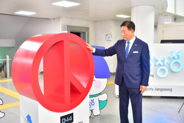 [남도저널] 정현동 기자 = 김한종 장성군수가 20일 군청 1층에 설치되어 있는 ‘제21대 대통령선거 디데이 카운터기’를 살펴보고 있다.