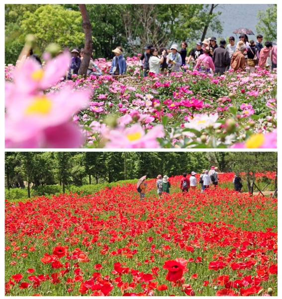 [남도저널] 임실군 옥정호 붕어섬 생태공원과 운암면 운종리 일대가 5월을 맞아 화려한 작약과 붉은 꽃양귀비로 뒤덮이며 아름다운 장관을 선사, 전국 각지에서 찾아온 관광객들에게 큰 인기를 끌고 있다.
