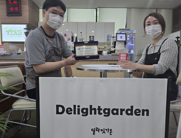 [남도저널] 김용범 기자 =광주 광산구가 건강보험심사평가원 광주전남본부와 광산어등지역자활센터가 운영하는 카페 ‘딜라잇가든’을 건강카페 3호점으로 지정하고 인증패를 전달했다.