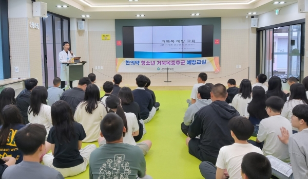 한의약 청소년 거북목 예방 교실은 스마트폰과 태블릿PC 사용 증가로 인해 경부 통증, 척추 불균형 등의 근골격계질환 발생률이 높은 청소년들을 대상으로 한의학적 예방 및 관리 건강교육을 통해 청소년들의 일상 속 건강 문제를 사전에 차단하고 올바른 생활 습관을 정착시키기 위해 마련했다.