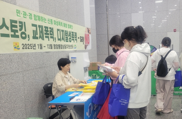 ‘2025 구인구직 만남의 날’ 행사장에서 진행된 이날 캠페인은, 디지털 기술 발달과 노동환경 변화 속에서 발생하는 디지털 성범죄, 스토킹, 데이트폭력, 직장내 괴롭힘 등 신종 여성폭력의 심각성을 알리고 피해를 예방하기 위해 마련됐다.