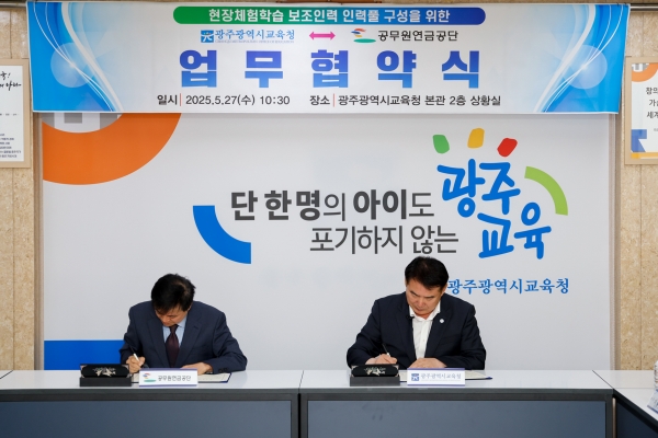 광주시교육청은 27일 상황실에서 공무원연금공단 광주·전북지부와 ‘현장체험 학습 보조인력 제공을 위한 업무협약’을 체결했다.