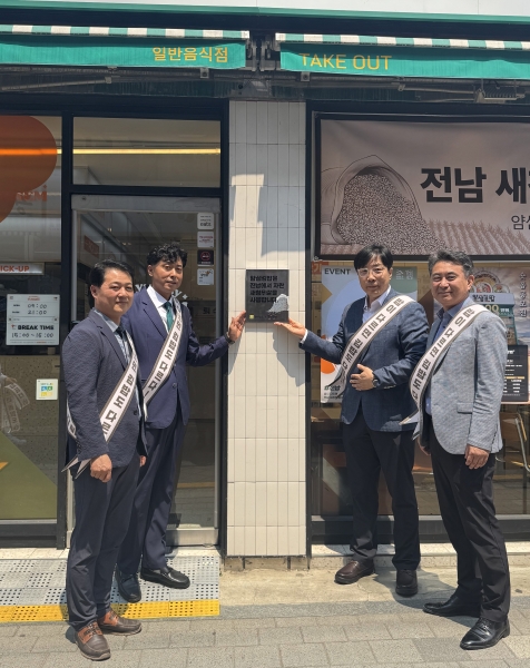 행사에선 김은광 얌샘김밥 대표, 배영수 영암통합RPC 대표 등이 참석한 가운데 새청무쌀 사용 인증식당 현판식을 게첨하고 얌샘김밥 손님을 대상으로 영암 달마지쌀 500g을 증정했다.