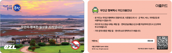 [남도저널] 정현동 기자 = 전남 무안군은 오는 6월 2일부터 교통 소외지역 주민들의 편의 증진을 위해 ‘행복택시 전용카드 정산시스템’을 본격 도입한다.