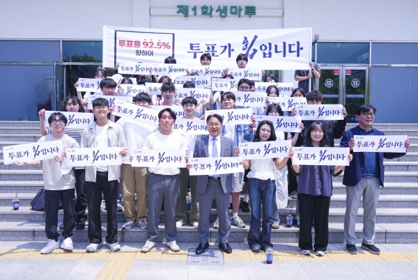 강 시장은 학생들과 광주시가 추진 중인 ‘투표가 힘이다-92.5% 투표율 달성’ 캠페인의 의미와 투표의 중요성 설명하고 투표 참여를 당부했다.