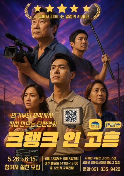 [남도저널] 김태현 기자 =고흥군과 고흥군 문화도시센터는 지역민이 직접 참여하는 단편영화 제작 프로젝트 ‘크랭크 인 고흥’의 참여자를 오는 6월 15일까지 모집한다고 밝혔다.