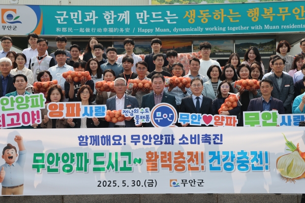 [남도저널] 정현동 기자 =전남 무안군은 양파가격 하락으로 어려움을 겪는 농가를 돕기 위해 무안 양파 소비 촉진 운동을 전개하고 온라인 쇼핑몰 ‘맛뜰무안몰’에서 양파 30% 할인 기획전을 추진하는 등 다각적인 소비 촉진 활동에 나섰다.