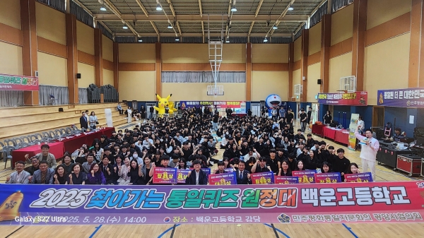 [남도저널] 김영도 기자 =민주평화통일자문회의 전남광양시협의회는 지난 5월 28일 오후 2시, 광양백운고등학교 체육관에서 1·2학년 학생 500여명이 참석한 가운데 ‘2025년 찾아가는 통일퀴즈 원정대 – 광양백운고편’을 성황리에 개최했다고 2일 밝혔다.
