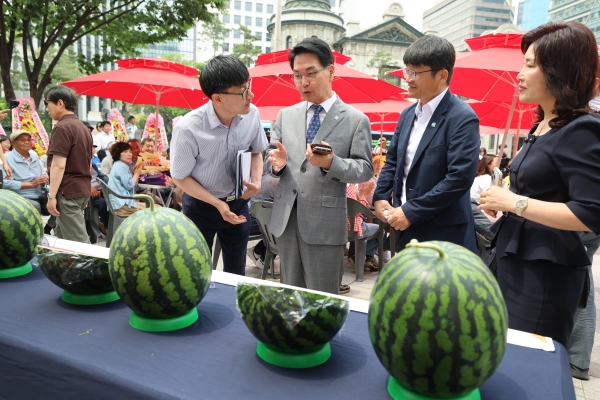 이날 고창수박 무료시식 부스에는 길게 줄이 이어졌고 달콤한 맛과 아삭한 식감에 소비자들은 연신 엄지를 치켜세웠다.