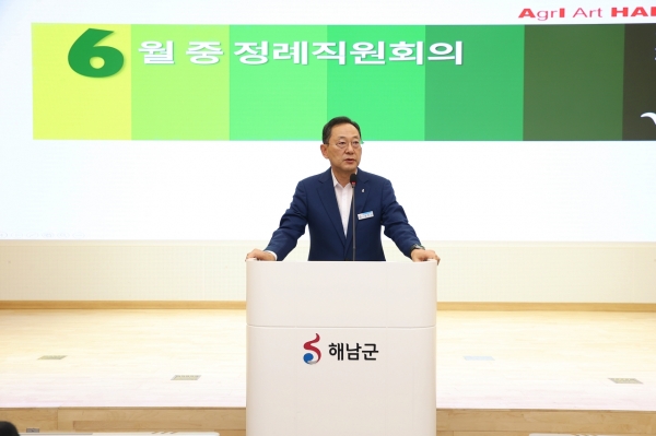 명현관 군수는 3일 직원 정례회의를 통해“지난해 계엄선포에서부터 대통령 탄핵 등 비상상황에서 치러진 조기대선이지만 빈틈없이 선거가 진행될 수 있도록 착실히 준비한 결과 높은 투표율로 선거를 잘 마무리하게 됐다”며“직전 대선에서 도내 16위라는 투표율이 이번 선거에서는 3위까지 상승할 수 있었던 데는 군민들과 공직자들이 합심해 선거를 통해 해남발전의 계기를 만들어보자는 의지가 통했기 때문”이라고 강조했다.