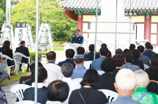 조상래 곡성군수는 추념사에서 “나라를 위해 희생하신 순국선열과 애국지사들의 헌신이 결코 헛되지 않도록 보훈의 의미를 깊이 새기고 국가유공자와 보훈가족에 대한 존경과 예우를 다하겠다”고 말했다.